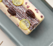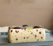 Découvrez notre buche Lime cheese-ice, composée d’une mousse citron vert façon cheese cake, croquant avoine et sirop d’érable, biscuit moelleux des « îles du vent » crème de pécan glacé, confit myrtille sauvage.