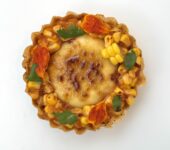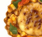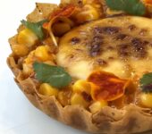 Découvrez le Chica, une création qui vous fera voyager à travers les saveurs du Mexique. Il est composé d’un flan maïs brulé, façon crème brulée, d’une pâte filo poivre fumé, piment doux et d’une pralinade maïs, huile anis étoilé et coriandre.