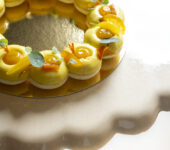 Découvrez notre couronne de macarons agrumes.