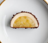 Découvrez le Moonlight, une symphonie de textures entre la poire et le chocolat. Ce dessert exquis marie un crunch riz châtaigne, un pralin amande chocolaté, une mousse poire avec le jus du confisage des poires, et un clafoutis poire fondant.