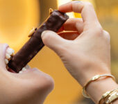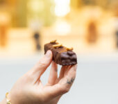 Découvrez notre snickers revisité, caramel tendre cacahuète vanille, brownie, crunch amandine